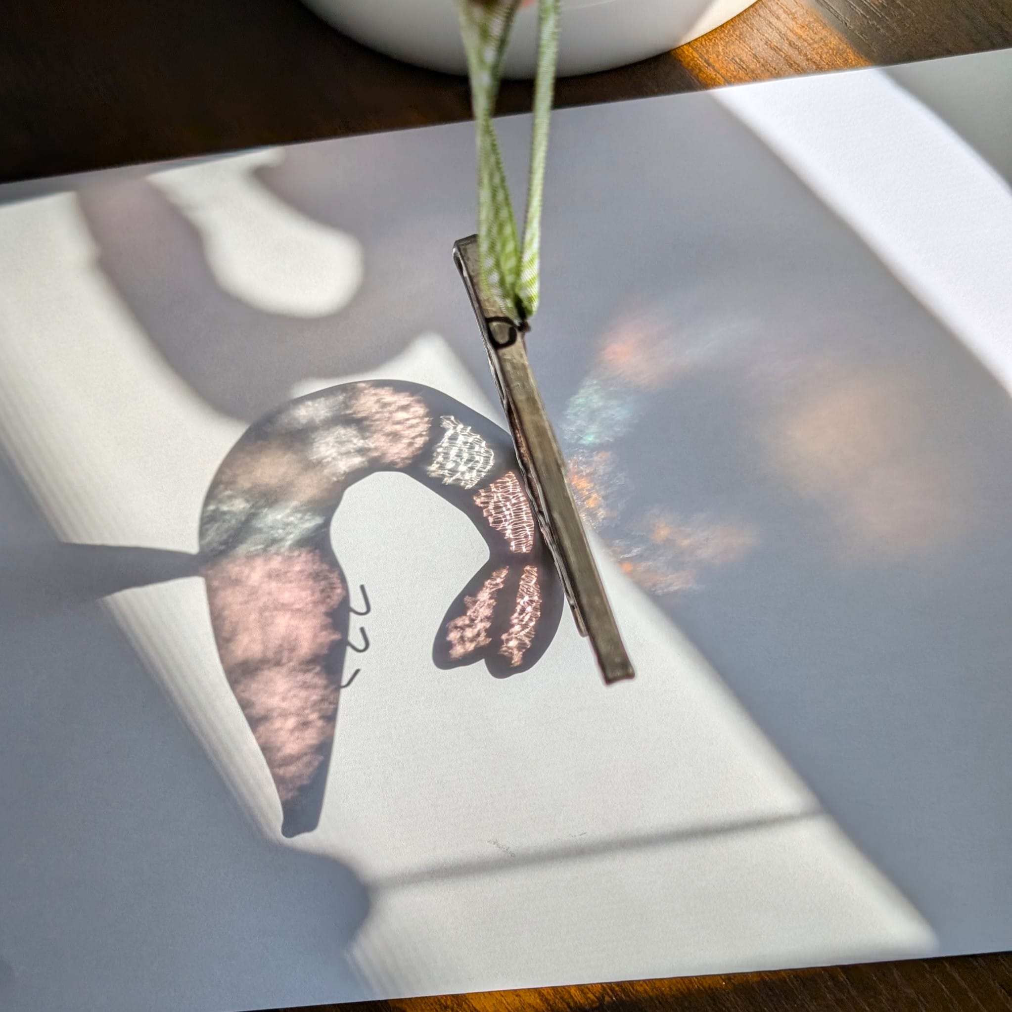 – Iridescent glass – Hand painted details – Green gingham ribbon for hanging 4″ long – Measure 3.5″ x 4.5″ *Includes shipping costs to the continental US